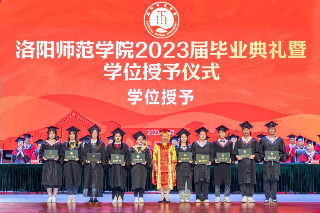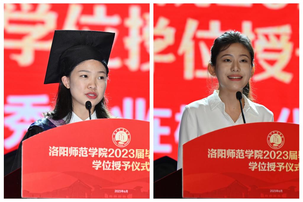 本科毕业生代表、文学院优秀毕业生黎乐怡发言,总结了自己在洛师四年青春时光的收获,表示将永远铭记校风校训,让牡丹牌毕业生的旗帜扎根祖国大地。在校生代表、新闻与传播学院2021级本科生陈梓馨,校友代表、米兰app官方端网站入口1992届历史系毕业生、洛阳市教师发展中心主任齐振富先后发言,表达了对母校的感激之情和对2023届毕业生的美好祝愿。毕业生家长代表刘中午向学校领导及老师对同学们的辛勤栽培表达感谢,激励全体毕业生胸怀理想,去更广阔的天地书写更精彩的人生!教师代表、生命科学学院副院长付鹏程博士,希望全体毕业生将个人理想与家国担当融为一体,继续砥砺前进,直面挑战,奋楫笃行。