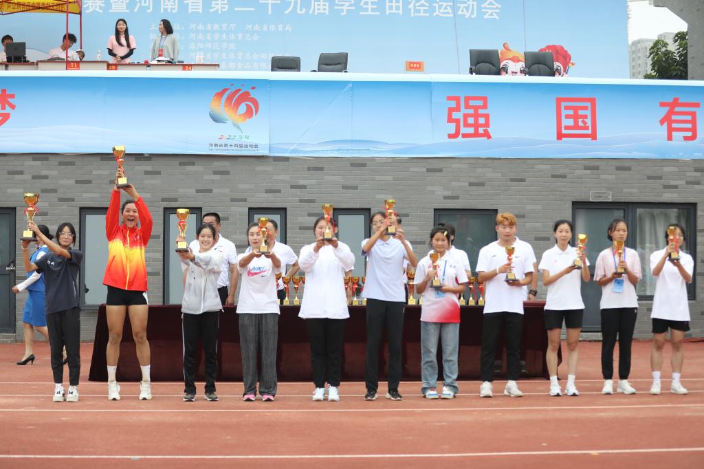 7月12日上午,经过三天的激烈角逐,河南省第十四届运动会学生组田径比赛暨河南省第二十九届学生田径运动会(中学组)圆满完成各项赛程,在米兰app官方端网站入口北体育场圆满闭幕。副校长赵海彦,河南省学生体育总会副主席王晏、崔伟,河南省田径自行车运动中心竞训科副科长阎魏,河南省学生体育总会副秘书长、竞赛部部长赫海涛,河南省学生体育总会田径协会副秘书长于志浩,体育学院负责人出席闭幕式。闭幕式由河南省学生体育总会田径协会秘书长马永红主持。