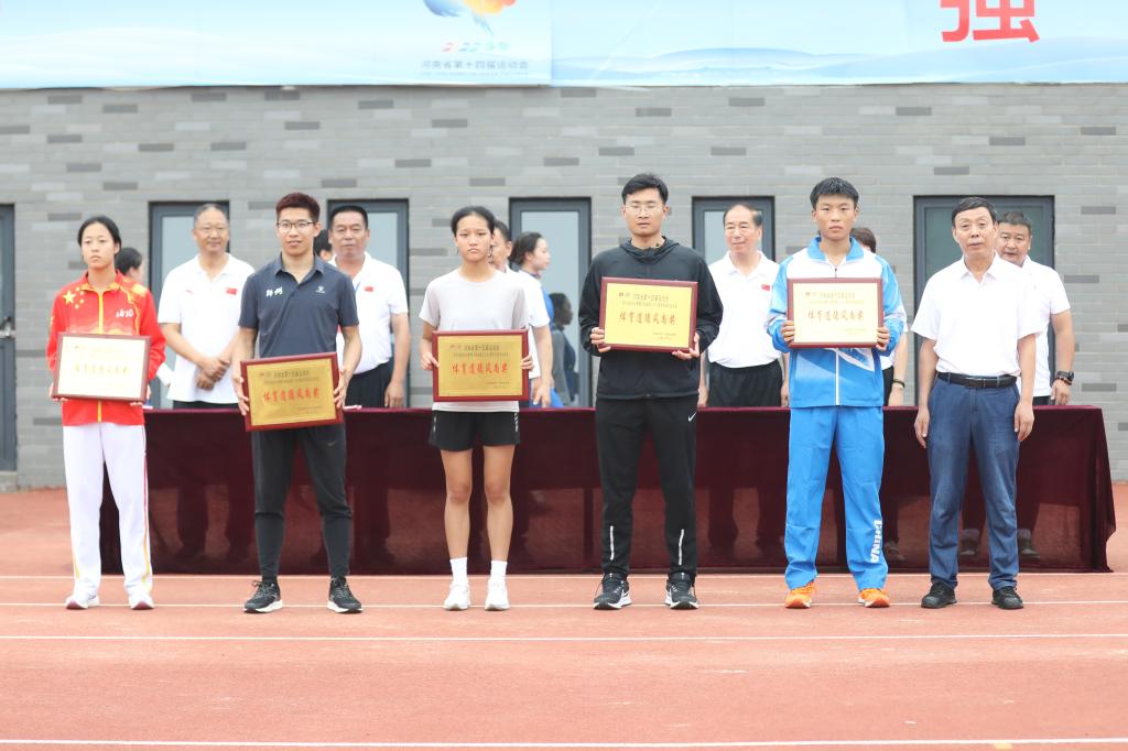 赫海涛宣布获得体育道德风尚奖的单位及个人。洛阳、郑州、许昌、开封、安阳代表队获得本次运动会体育道德风尚奖;陈小雨等34人获得体育道德风尚奖优秀运动员;牛铭豪等22人获得体育道德风尚奖优秀裁判员。