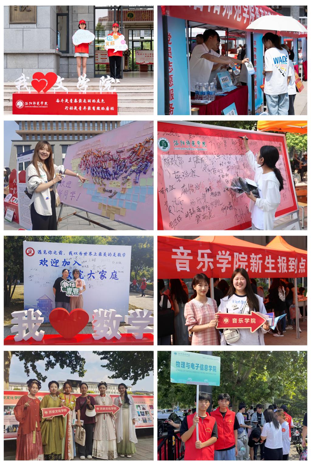 各学院也以别样的迎新方式欢迎着新同学的到来。外国语学院在报到点设立“爱心棒棒糖”留言展板,用一张写下自己期待的便利贴换一个棒棒糖的形式,祝愿新生即将开启的大学生活甜蜜加倍;历史文化学院开展萌新参观博物馆活动,带领新生参观河洛文化研究中心文物陈列室、洛阳铲博物馆,让新同学在感悟厚重历史中,开启大学生活新征程;教育科学学院组织了“萌新时光邮局——给未来的自己”主题活动,通过时光邮局写信送给四年后的自己,给未来留下回忆;马克思主义学院开放虚拟仿真实验室和地方党史纪念馆,安排专人讲解,让新生沉浸式体验红色文化;各学院还设置迎新打卡墙,以便新生拍照留念,记录下他们踏入大学校园的第一个美好瞬间……