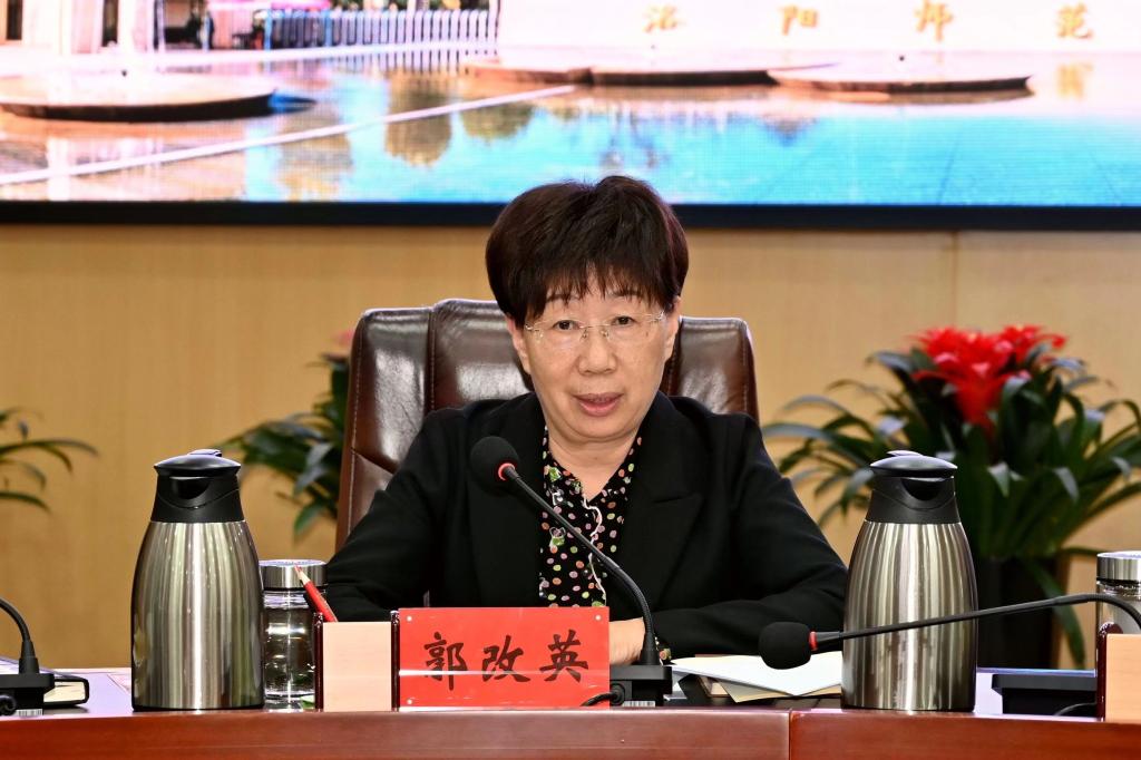 郭改英书记以《深入学习贯彻习近平文化思想 奋力开创学校宣传思想文化工作新局面》为题,从“提高政治站位,深刻领悟习近平文化思想的丰富内涵和重大意义”“加强组织领导,持续掀起学习宣传研究阐述习近平文化思想的热潮”和“坚持守正创新,不断推动学校宣传思想文化工作呈现新气象实现新作为”三个方面交流了学习体会,强调要积极构建“大宣传”工作格局,努力产出一批有价值、有深度、有影响的研究成果,推出一系列校园文化精品,不断厚植广大师生文化自信根基,为文化强国事业交出一份满意的“洛师答卷”。