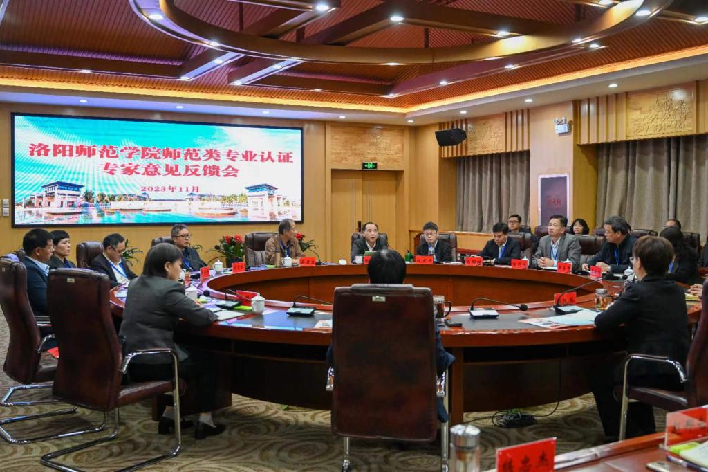 傅康生代表联合认证专家组反馈进校考查总体意见。他指出,学校构建了以河洛文化为特色的中华优秀传统文化育人体系,充分重视师范类专业内涵建设和特色发展。希望学校能够继续深化对认证标准的理解,围绕弘扬教育家精神的新时代师范生培养要求,精心开展师范类专业建设工作,把好质量保障体系,培养出教育强国所需要的高素质专业化的基础教育新师资。吴亚林、祝东进、王建平代表各专家组,分别对体育教育、数学与应用数学、化学专业反馈总体考查意见,在充分肯定专业办学优势和特色的同时,又精准指出三个专业在培养目标、毕业要求、质量保障等方面存在的问题,并提出了具体的改进意见和建议。