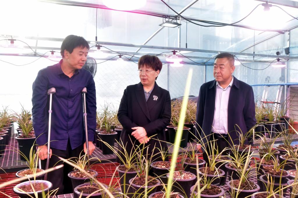 郭改英一行在栾川县委常委、县委办公室主任温利涛,庙子镇党委书记张玉峰的陪同下,实地察看了杨树底村2023年新建成的兰花产业园,并和蕙兰种植企业负责人深入交流,全面了解经营发展情况。听取了驻村第一书记姜一达关于村产业发展、基础设施提升、乡村内涵建设以及杨树底村未来五年发展规划等方面的情况汇报。