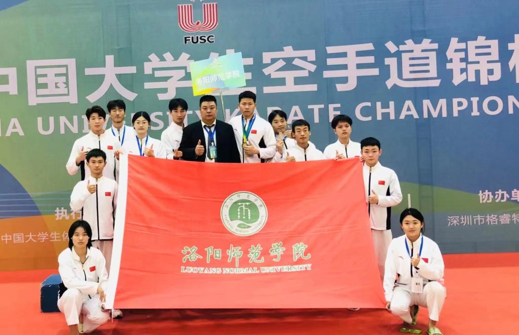 11月22日至26日,由中国大学生体育协会主办的第11届中国大学生空手道锦标赛在深圳市举行。米兰app官方端网站入口选派了12名队员参加,经过激烈角逐,最终斩获2枚金牌、2枚银牌、4枚铜牌的优异成绩。其中,马帅博、朱志涛、于航获三人团体型金牌,马帅博、朱志涛、于航、王雪洋、张益豪、李明月获六人男女混合团体型金牌,朱光耀、闫龙强、彭碧辉获男子三人型银牌,李宇航获71kg公斤级银牌,朱光耀、闫龙强、彭碧辉、杨浩旭、李好、李宇航获男女混合团体型铜牌,杨浩旭、闫龙强、马帅博分别获个人组铜牌。