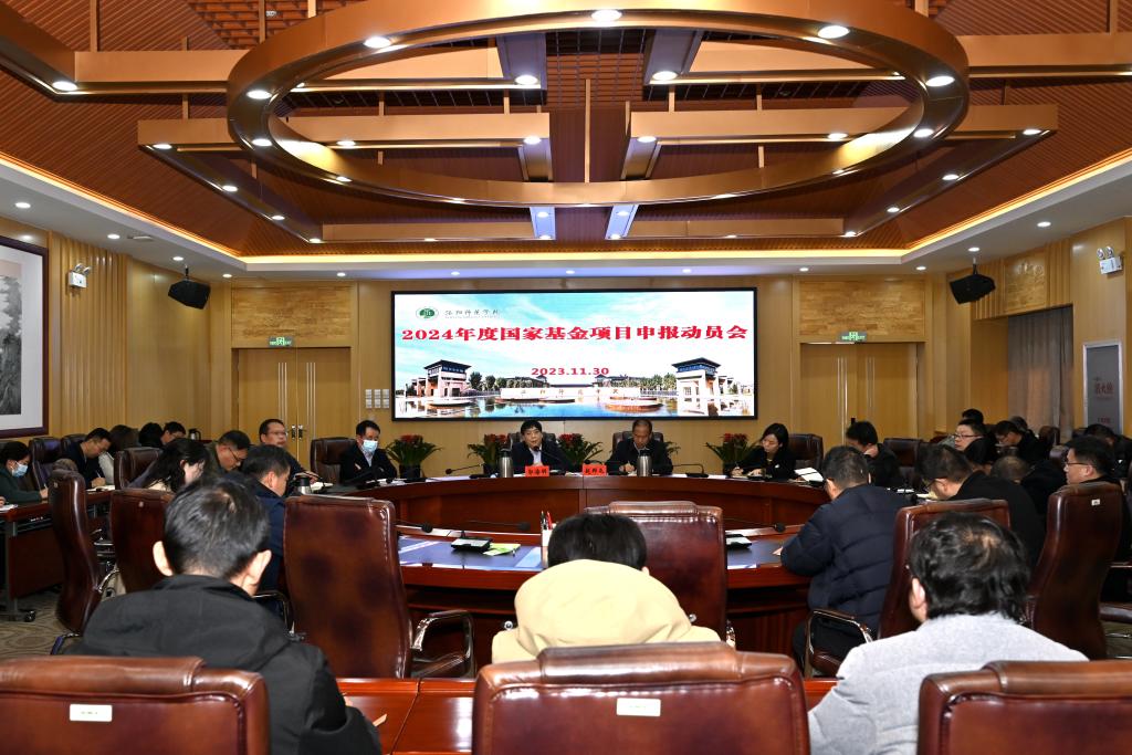 11月30日下午,学校在成均楼B301会议室召开2024年度国家基金项目申报动员会。校长郭海明,副校长赵邦屯,各学院院长、主管科研副院长,科研管理处负责人及相关工作人员参加会议。会议由赵邦屯主持。