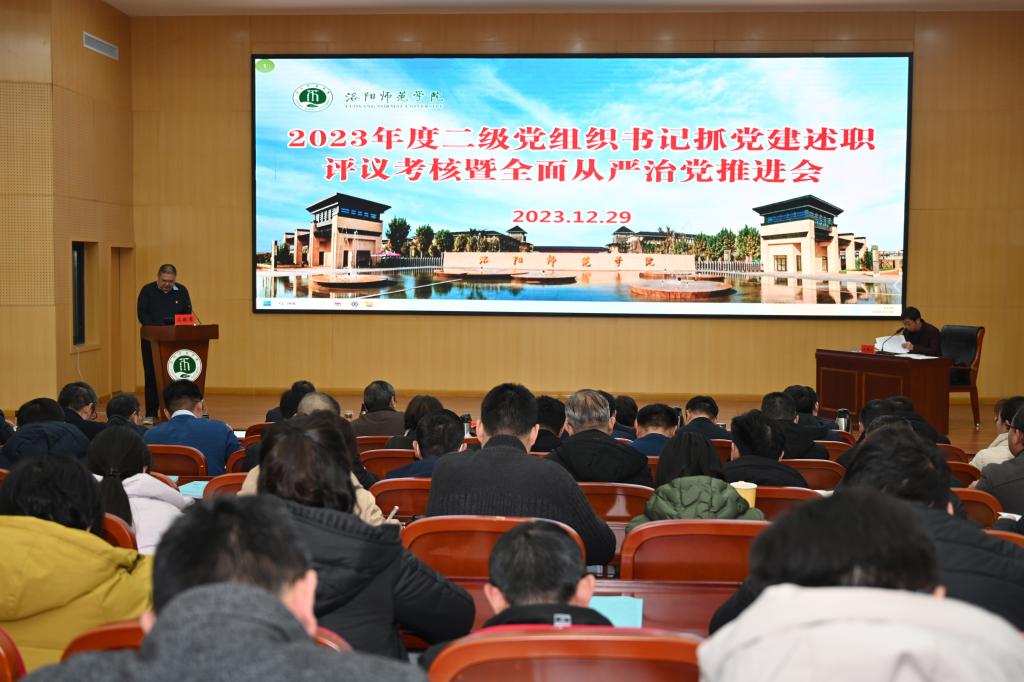 12月29日上午,学校在成均楼B106报告厅举行2023年度二级党组织书记抓党建述职评议考核暨全面从严治党推进会。校党委书记郭改英,党委副书记、工会主席李晓彦,副校长张运礼,纪委书记练忠杰,党委职能部门及纪委监察专员办公室负责人,各二级党组织书记、副书记,组织员和基层党支部书记代表参加会议。
