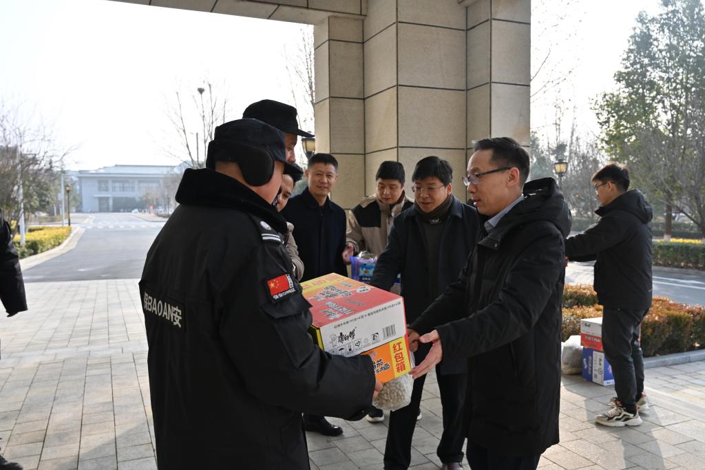 2月9日,在新春佳节来临之际,副校长张运礼带领党政办公室、党委宣传部、保卫处、后勤处等部门负责同志,深入学校值班值勤各个点位看望慰问春节期间坚守岗位的一线干部职工,向他们送上节日的问候和诚挚的祝福。