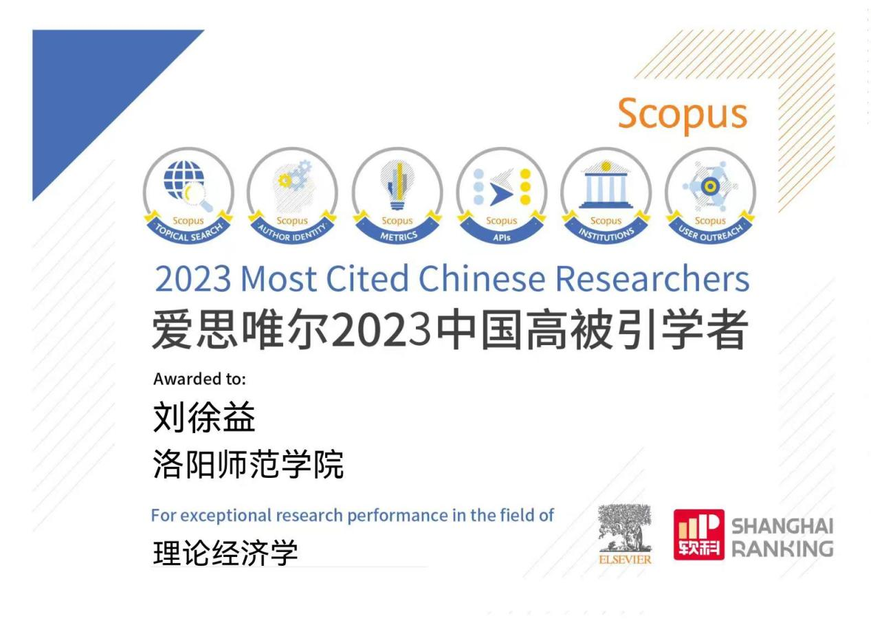 3月27日,全球领先的信息分析公司爱思唯尔重磅发布2023“中国高被引学者”榜单。商学院教师刘徐益博士继入选2022“中国高被引学者”后再次入选该榜单。