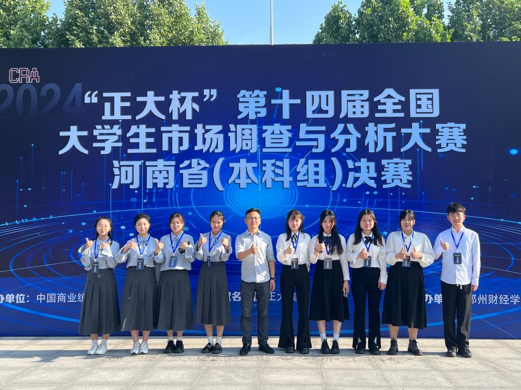 自2023年10月大赛启动以来,先后有233名本科生和研究生报名参加,数学科学学院积极加强训练指导,历经初赛网上知识测试、校赛选拔、调查报告专家评选、线上视频展示等环节,最终两个团队的作品:《“蜂花”绝代映朝阳,共谱国韵新华章——以蜂花为例的国货消费市场与发展前景分析》《博识之殿融商贾之道,文雅之馆汇市井之气——基于“郑洛西开”四地探讨“博物馆+商业”模式的可行性及其前景》,进入到河南赛区决赛的现场展示与团队答辩环节。