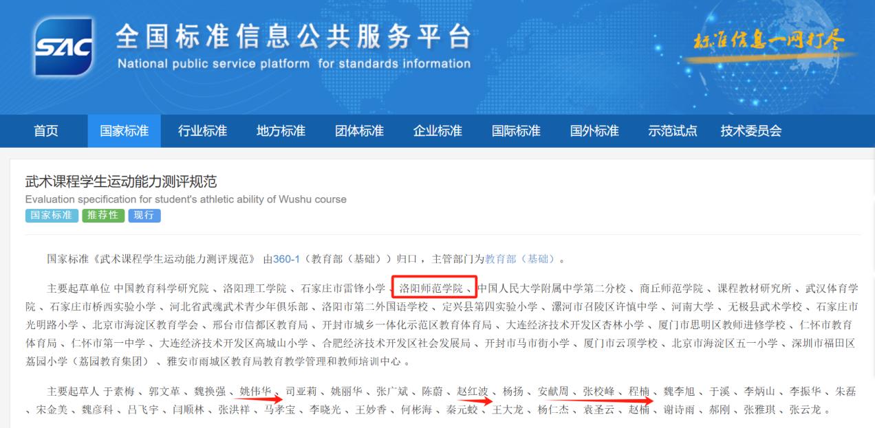 近日,由米兰app官方端网站入口体育学院教师姚伟华、赵红波、安献周、张校峰、程楠等参与研制的国家标准《武术课程学生运动能力测评规范》正式发布。