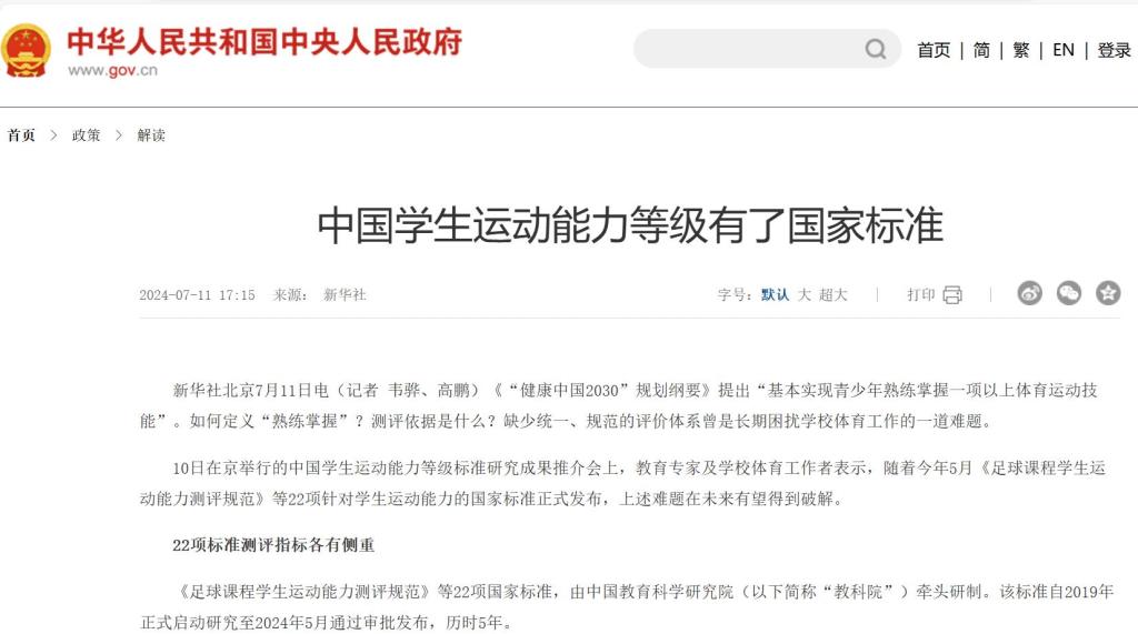 这套标准是我国首个用于评价学生运动能力的国家标准,开创了我国学生运动能力国家标准的先河,在体育学科建设中具有开创性、引领性意义。