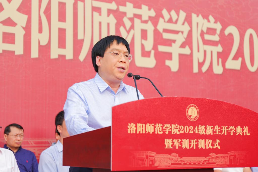 郭海明代表学校向全体新同学表示热烈的欢迎和衷心的祝贺,介绍了学校的办学历史等基本情况,向全体新生提出四点希望:一是涵养家国情怀,树立“天生我材必有用”的志向。把个人志向与强国建设、民族复兴相结合,自觉担负起时代赋予的历史责任和光荣使命。二是保持崇德向善,培养“格物致知诚正心”的修养。学会明大德、守公德、严私德,锻造高尚谦逊的品格,锤炼坚韧不拔的意志,培育精益求精的精神,成为有大爱大德大情怀的人。三是刻苦学习知识,坚定“腹有诗书气自华”的自信。多读“有字之书”,既在本学科专业领域精耕细作、打牢基础知识,也注重多学科知识的涉猎与钻研,更要多读“无字之书”,在社会大课堂上受教育、长才干。四是乐于吃苦奋斗,坚持“人间万事出艰辛”的执着。要继承和发扬老一辈不怕吃苦的精神,摒弃骄娇二气,多吃学习之苦、坚持之苦、自律之苦,争做干事创业的先锋者、勇往直前的奋进者、不畏艰难的搏击者,奋力书写“奋斗青春、强国有我”的时代答卷,为推进强国建设、民族复兴作出应有的贡献!