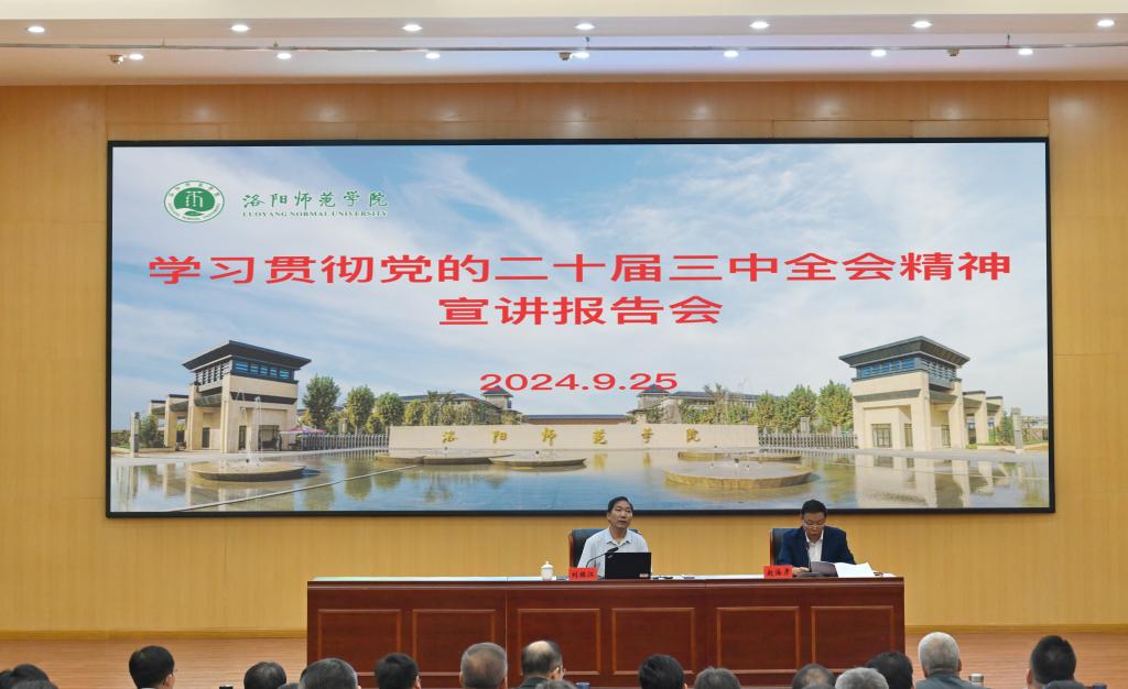 9月25日上午,学校学习贯彻党的二十届三中全会精神宣讲报告会在成均楼B106报告厅举行,会议邀请省委教育工委宣讲团成员、河南科技大学马克思主义学院院长刘振江教授作专题报告。全校中层正职干部、教师及学生代表200余人参会,学校党委副书记、工会主席赵海彦主持会议。