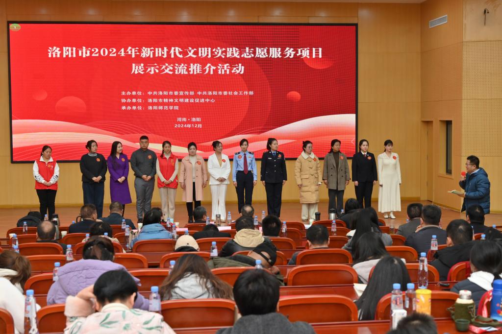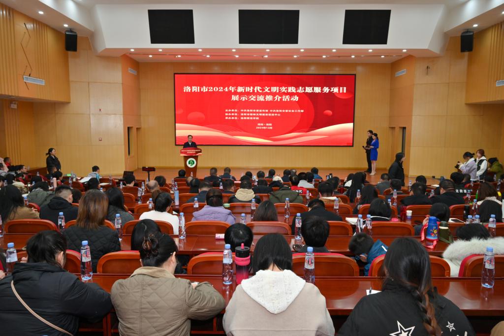 12月8日,由中共洛阳市委宣传部、中共洛阳市委社会工作部主办,洛阳市精神文明建设促进中心协办,米兰app官方端网站入口承办的洛阳市2024年文明实践志愿服务项目展示交流推介活动在成均楼B106报告厅举行。校党委副书记张运礼,洛阳市委宣传部副部长、市文明办主任焦元鹏,洛阳市委社会工作部副部长粱士甫出席活动。
