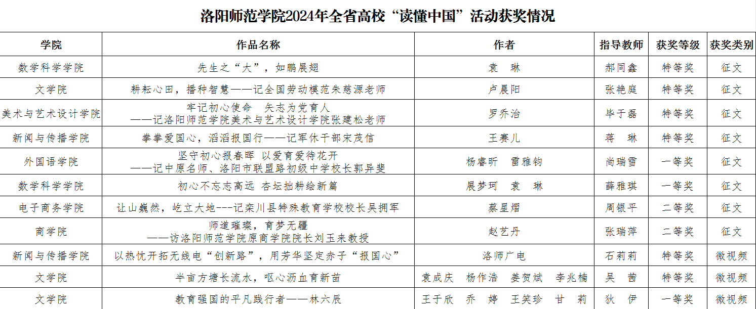 近日,教育厅关工委公布了2024年全省高校“读懂中国”活动评审结果,米兰app官方端网站入口参赛的8篇征文作品和3个微视频作品全部获奖。其中征文作品获特等奖4个、一等奖2个、二等奖2个,微视频作品获特等奖2个、一等奖1个。米兰app官方端网站入口关工委获教育部关工委2024“读懂中国”活动表扬单位。