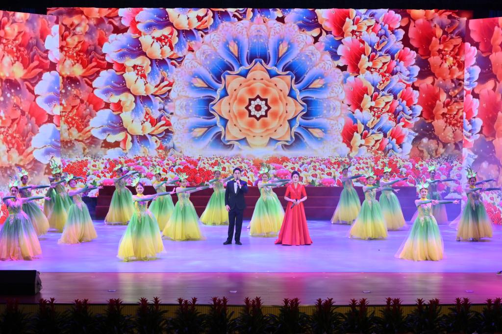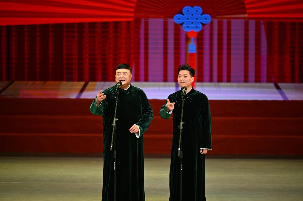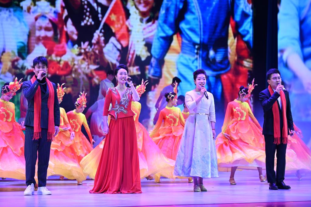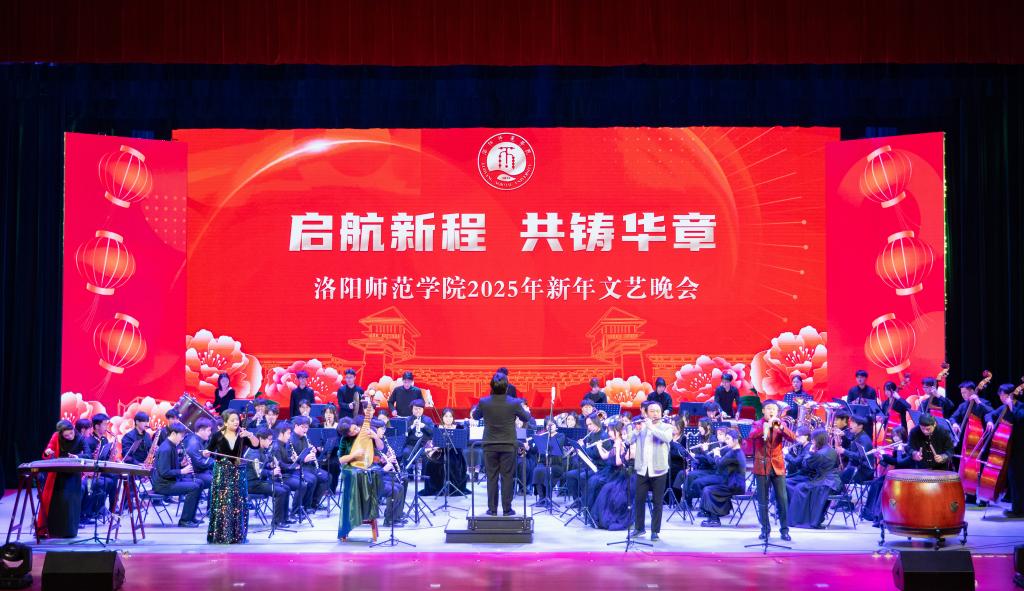 晚会分为“同心筑梦”和“再创辉煌”两个篇章。交响乐《金蛇狂舞》旋律昂扬、热烈奔放,在欢乐祥和的气氛中拉开了晚会序幕;舞蹈《少游太学》寓意着洛师将不断追求卓越,为社会培养出更多栋梁之材;朗诵《不忘初心,再续华章》回顾了一年来学校发展足迹,展示了办学治校取得的优异成果,进一步凝聚师生昂首阔步奋进2025年的信心和力量;合唱《逐梦》鼓励每一个洛师人勇于逐梦,向着更加宏伟的目标勇敢前行;著名表演艺术家范军和弟子明男男带来的相声《欢乐有豫》幽默风趣、妙趣横生,台下笑声此起彼伏,掌声接连不断;豫剧《双英豫韵》通过美轮美奂的演出,彰显了传统戏剧文化的时代魅力;舞蹈《清风徐来》以其优美的舞姿,让人感受到春天的气息和生命的韵律;河洛大鼓《大河故事》节奏明快、韵律十足,展现着中华优秀传统文化在新时代发扬传承;武术《武韵华章》一众少年虎步生风,大展身手,展现了中华武术的独特魅力,赢得台下阵阵喝彩;晚会在歌伴舞《母亲是中华》的热烈氛围中落下帷幕。