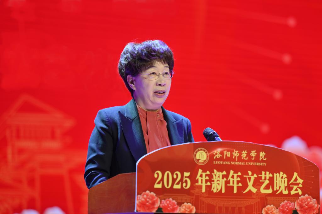 郭改英致新年贺词,向大家致以节日的问候和美好的祝福。她指出,2024年全校上下凝心聚力,书写了浓墨重彩的洛师印记。学校成功获批硕士学位授予单位,彰显了挺膺担当的“洛师之光”,全国文明校园创建在全省脱颖而出,诠释了奋力争先的“洛师之力”,本科教育教学审核评估,赢得了“五色闪亮”的赞誉,凸显了追求卓越的“洛师之美”,全面推进书院制育人和学生社区建设,践行了育人改革的“洛师之责”,在全省高等教育教学成果奖、专业分类评价、国家艺术基金获批总量成绩突出,书写了内涵发展的“洛师之为”,学校幼儿园建设项目正式开工,回应了幼有所育的“洛师之盼”。展望2025年,她强调,全体师生要始终保持“时不我待、只争朝夕”的奋进姿态,坚定不移锚定更名大学目标,锻造迎难而上的勇气、敢为人先的锐气、蓬勃向上的朝气,向高而攀、向新而生、向远而行,为建设特色鲜明的地方高水平师范大学贡献智慧和力量!