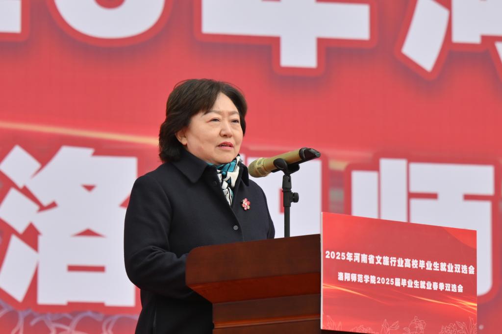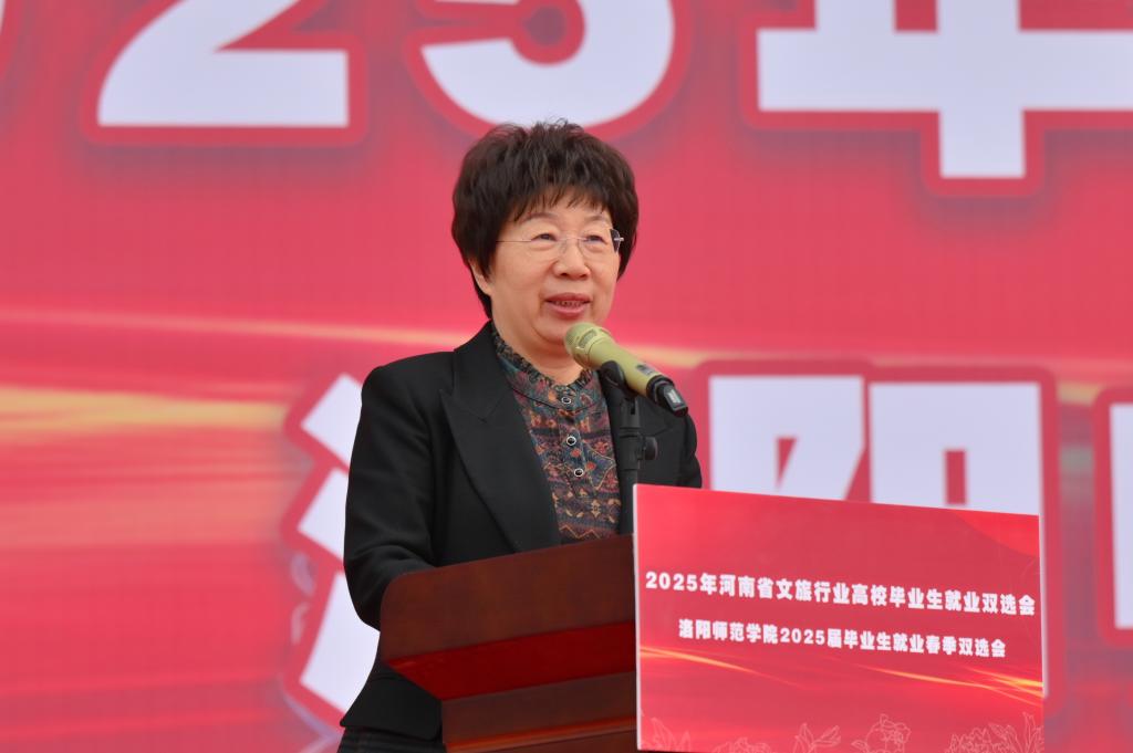 河南省教育厅二级巡视员胡万欣,河南省文化和旅游厅二级巡视员刘春晓,校党委书记郭改英,河南省教育厅学生处四级调研员钱鹏俊,洛阳市文化广电和旅游局党组书记、局长李振刊,副校长马录芳、程金龙出席活动,洛阳市各县区文化广电和旅游局局长,驻洛高校相关负责同志,学校就业创业工作领导小组成员单位负责人,各二级学院党政负责人、就业创业办公室主任,毕业班辅导员、班主任和全体毕业生参加活动。启动仪式由党委副书记张运礼主持。