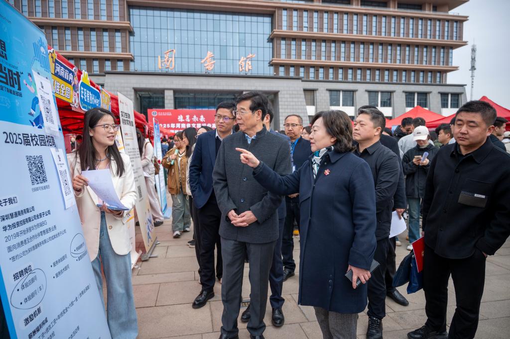 上午10时许,与会领导共同启动“2025年河南省文旅行业高校毕业生就业双选会”。随后,领导们走进招聘现场,与用人单位和毕业生亲切交流。