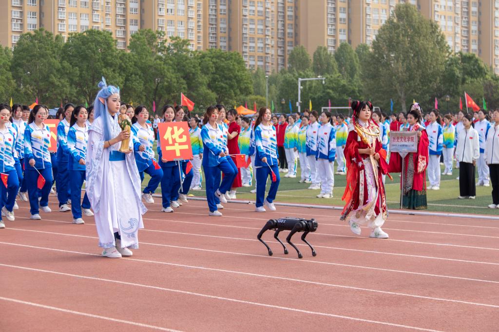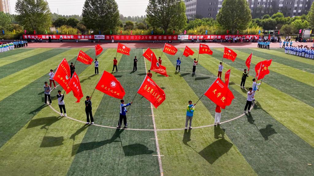 伴随着激昂嘹亮的运动员进行曲,护旗方阵、研究生方阵、各学院方阵、教工方阵等迈着整齐的步伐依次入场,充分展示了各学院学科专业特色,彰显了洛师师生良好的精神风貌。入场式结束后,全体师生整齐列队,升国旗、奏唱国歌。