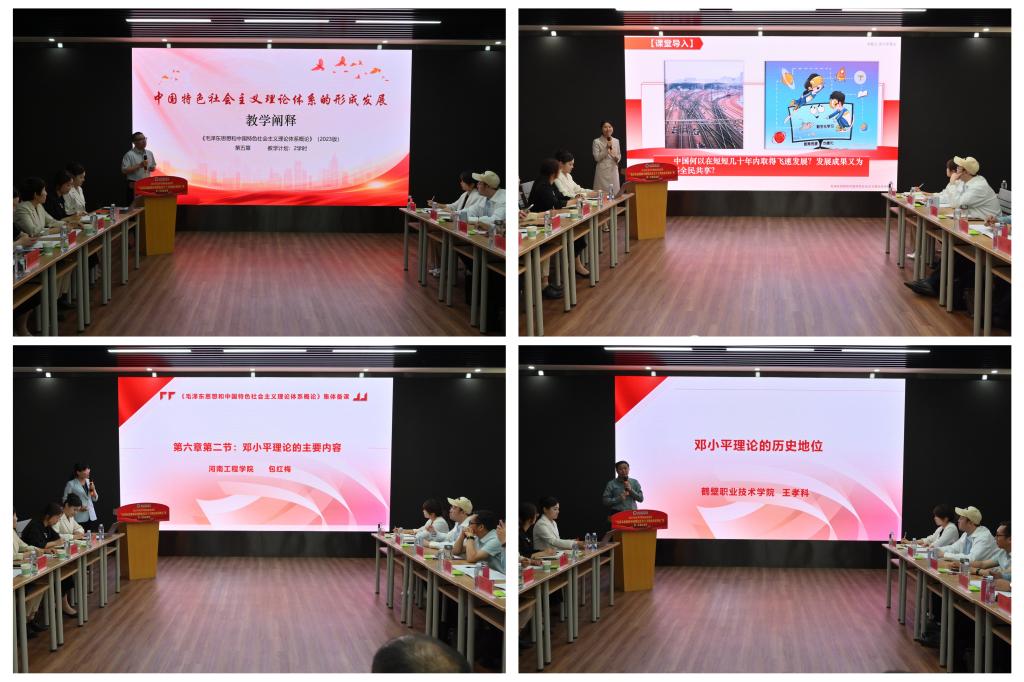 此次活动主要围绕“概论”课程第五章、第六章内容展开,以教师“说课+讲课”、专家点评相结合的方式开展集体备课研讨。华北水利水电大学苏二龙、郑州信息科技职业学院李萌、河南工程学院包红梅、鹤壁职业技术学院王孝科等四位教师进行了教学展示。河南工程学院姜国峰、周口师范学院王茂森、商丘师范学院丁亚仙、河南财政金融学院张珺倩等四位省“概论”教指委委员分别作了点评。