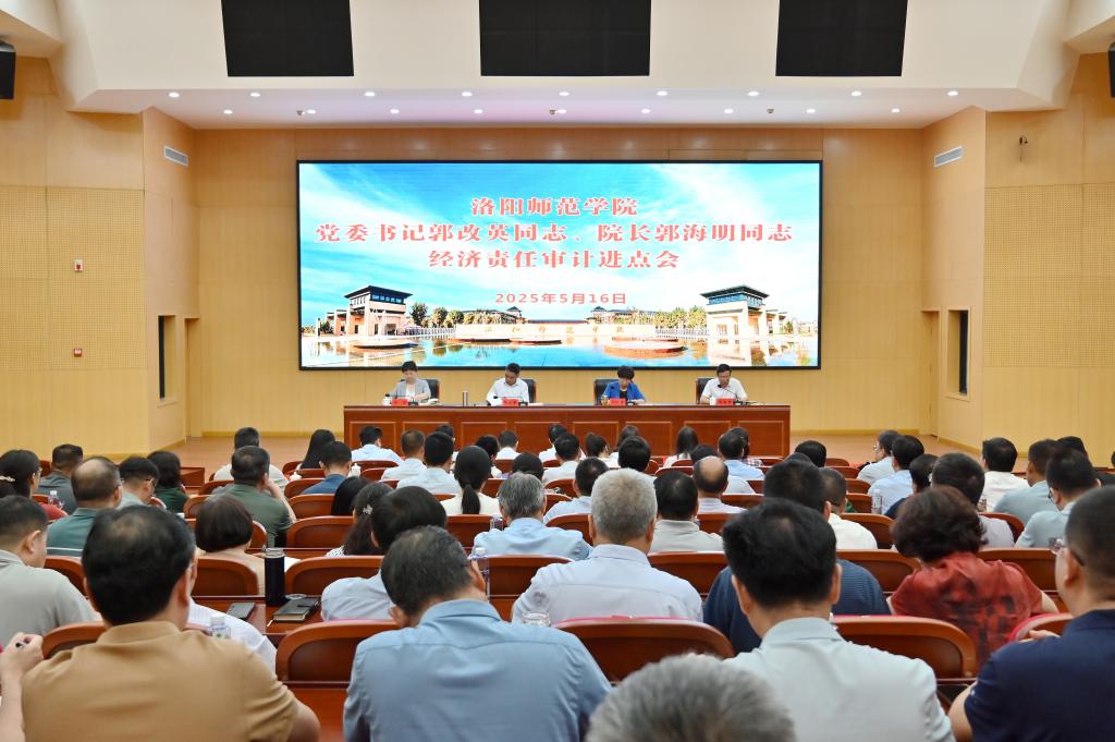 经中共河南省委审计委员会批准,中共河南省委审计委员会办公室、河南省审计厅派出审计组,对郭改英同志任校党委书记、郭海明同志任院长期间经济责任履行情况进行审计。5月16日上午,经济责任审计进点会在成均楼B106会议室召开。审计组组长、省审计厅党组成员、副厅长张建军,审计组副组长、省审计厅内部审计指导监督处处长方珺,审计组全体成员出席会议。校党委书记郭改英,校领导班子成员和全体中层正职干部参加会议。会议由校党委副书记赵海彦主持。