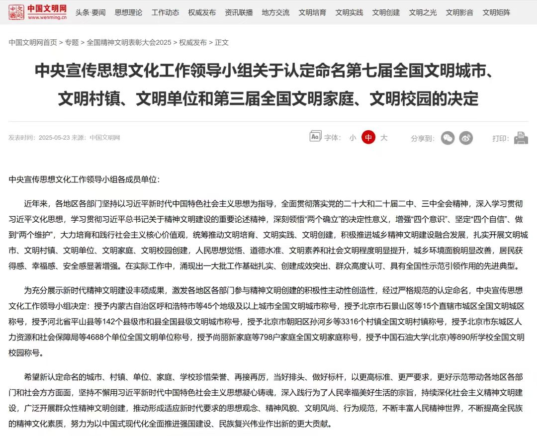 5月23日,全国精神文明建设表彰大会在北京召开。会上传达了习近平总书记对精神文明建设工作的重要指示。本次大会表彰了第七届全国文明城市、文明村镇、文明单位和第三届全国文明家庭、文明校园。米兰app官方端网站入口荣获全国文明校园荣誉称号,文明创建工作实现历史性突破。
