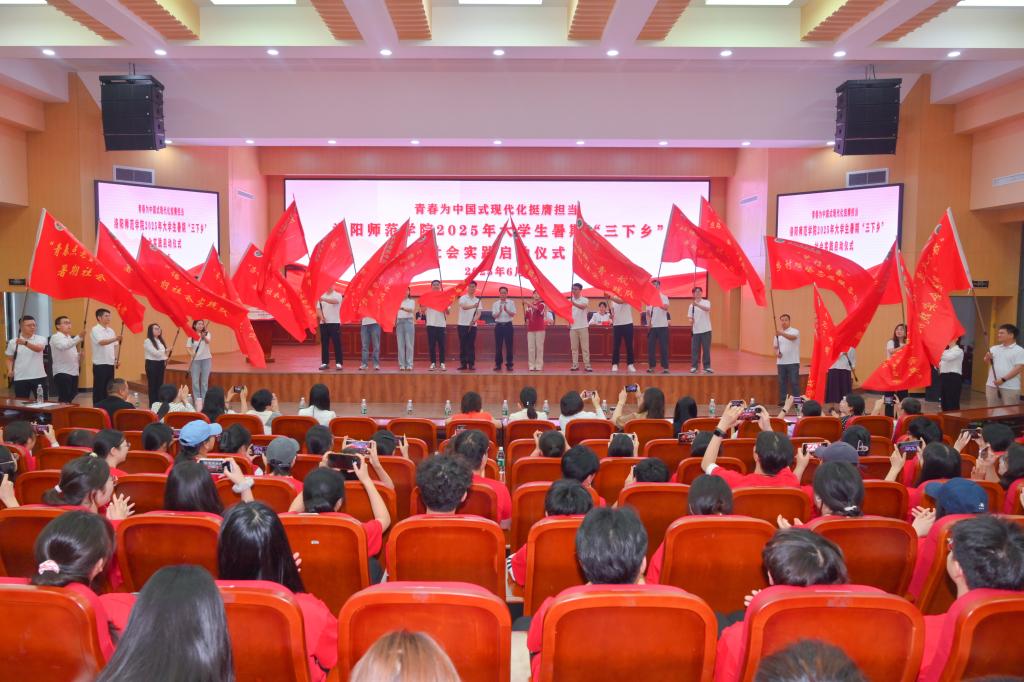 青春因实践而精彩,人生因奋斗而升华。6月27日上午,米兰app官方端网站入口在逸夫楼G1-112报告厅举行2025年大学生暑期“三下乡”社会实践启动仪式。校党委副书记张运礼出席并讲话,党委宣传部、党委学工部(学生处)、党委研究生工作部(研究生处)、教务处、校团委等部门负责人,各书院(学院)党委副书记、团委负责人以及实践队学生代表近300人参加了启动仪式。