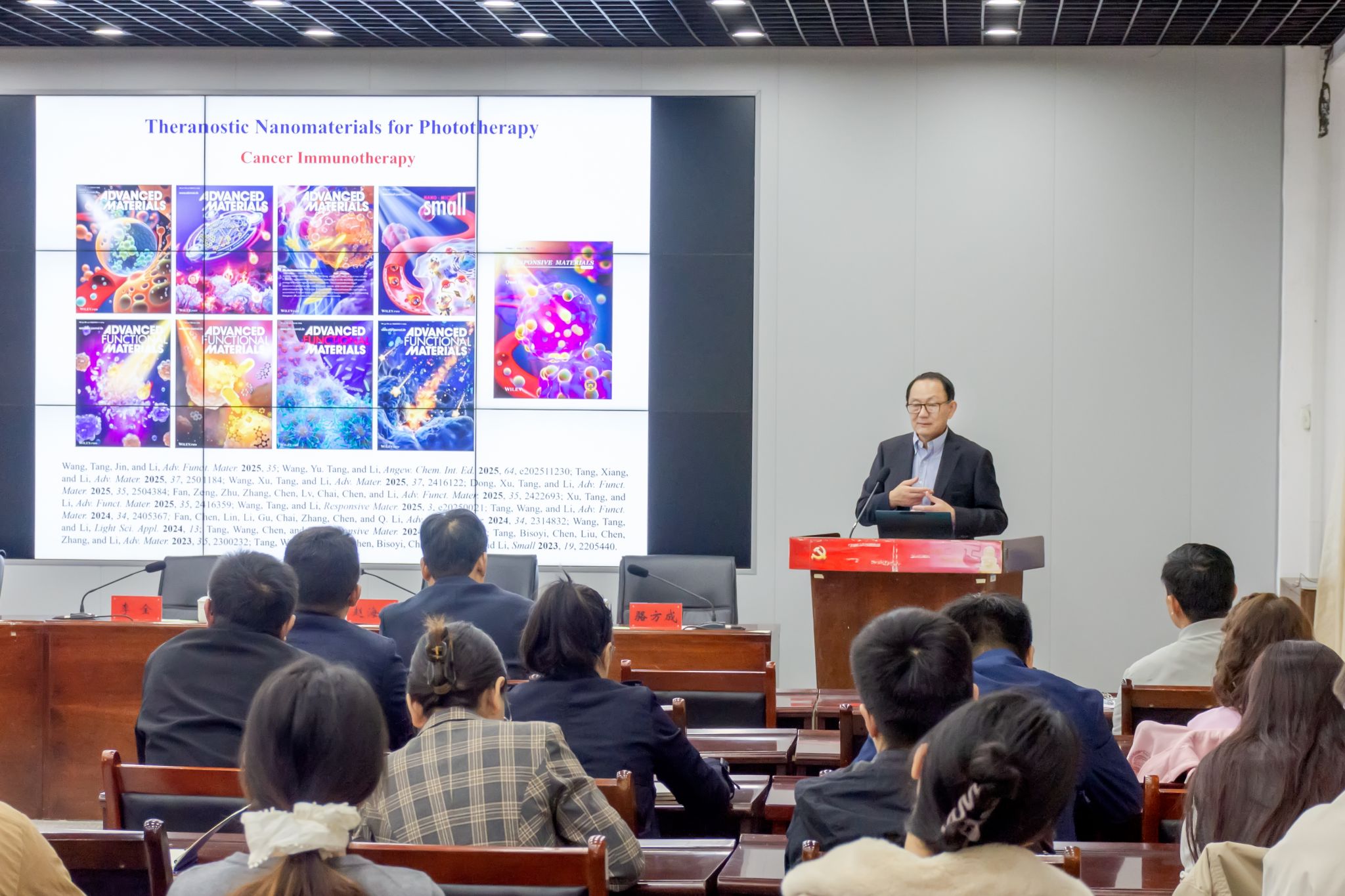 聘任仪式后,李全作了题为“响应材料:机遇与挑战”的学术报告,介绍了其研究团队基于液晶的动态光子学的伪装、激光操纵、光电显示、结构色调制、智能致动等领域的前沿探索成果,展示了液晶智能材料的特性和广泛的应用场景,展望了液晶材料未来的发展。会后,李全和与会师生围绕科研相关问题展开了深入交流探讨。