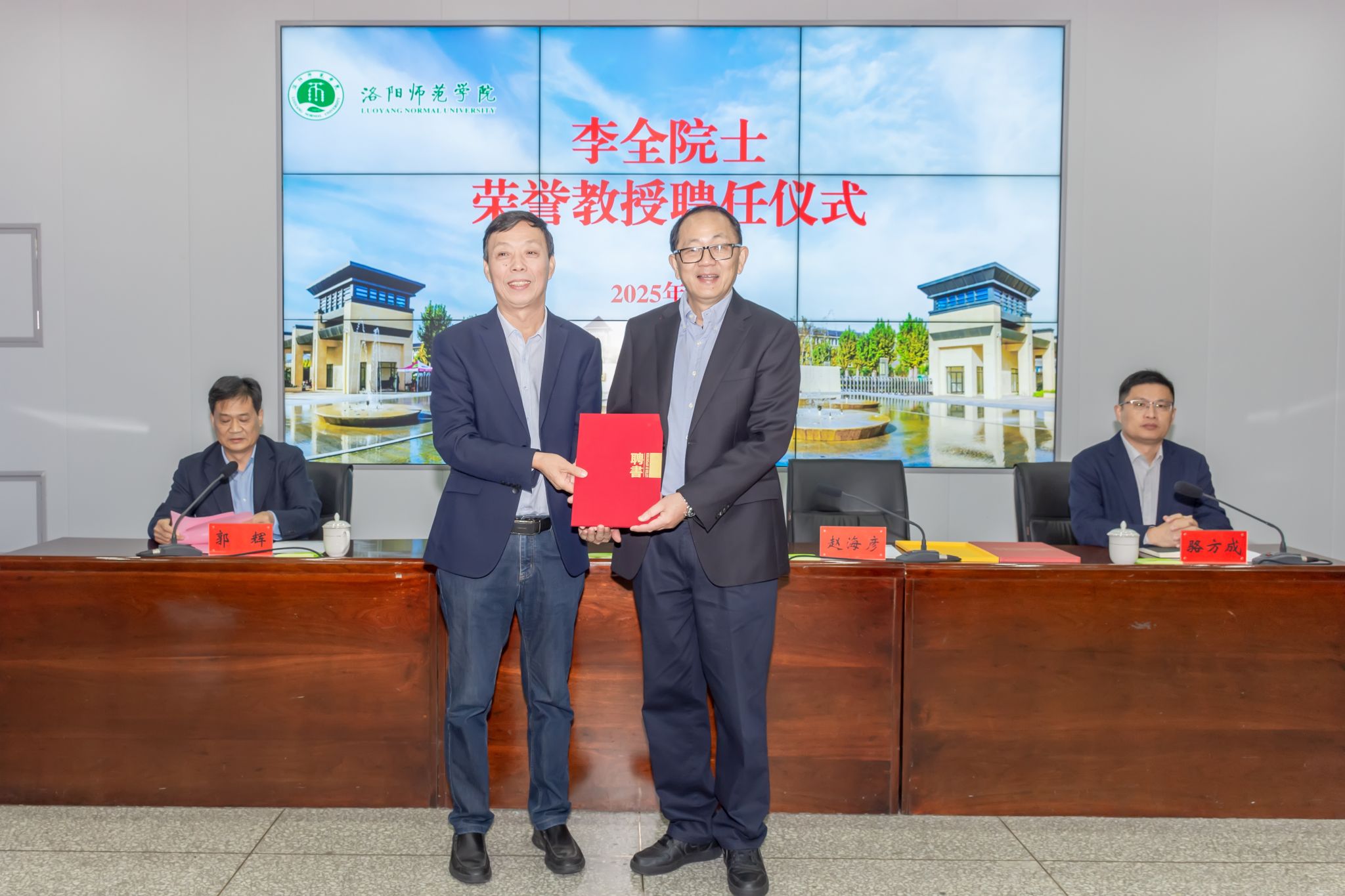 赵海彦向李全教授莅临米兰app官方端网站入口指导交流表示热烈欢迎,对其向学校提供的帮助和支持表示衷心感谢,并为其颁发荣誉教授聘书。