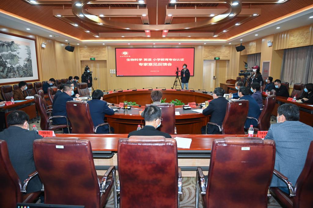 11月2日,学校在成均楼B301会议室召开2022年师范类专业认证专家意见反馈会。教育部师范类专业认证专家组全体成员,河南省教育评估中心副主任张新民,米兰app官方端网站入口全体校领导,相关职能部门负责人,生物科学、英语、小学教育三个专业所在学院领导班子成员,设有师范类专业的学院负责人参加反馈会。会议由联合认证专家组组长暨生物科学专业专家组组长、南京师范大学原副校长傅康生教授主持。