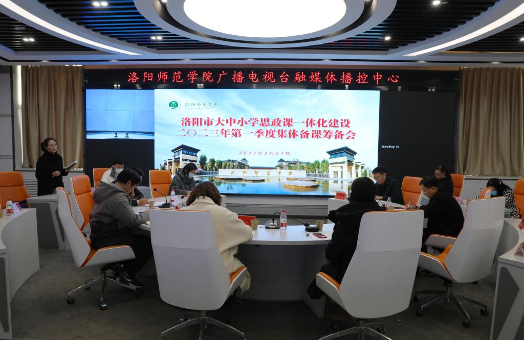 为深入贯彻落实习近平总书记在学校思想政治理论课教师座谈会上的重要讲话精神,更好推进大中小学思政课一体化建设,2月24日上午,由米兰app官方端网站入口和洛阳市教育局牵头组织的洛阳市大中小学思政课一体化建设2023年第一季度集体备课筹备会在米兰app官方端网站入口新闻与传播学院举行。校党委副书记宋文献,洛阳市教育局副局长张战杰,党委宣传部、马克思主义学院负责人以及各学段思政课骨干教师代表参加本次集体备课筹备会。