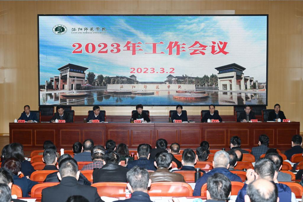 就做好2023年工作,郭改英提出四点意见:一是保持“一股劲”,坚定推进学校向更高层次发展的信心。2022年是学校事业发展的“突破年”“丰收年”。全校上下紧盯“两攻坚三大考”重点任务,克服疫情带来的不利影响,忘我工作、辛勤付出,众志成城、共谋发展,学校在申硕攻坚、内涵建设、民生工程、疫情防控、全面从严治党等方面发展取得了一系列突破性成绩,干成了很多长期想干没有干成的大事,啃下了很多“硬骨头”,实属不易,难能可贵。二是把握“一盘棋”,增强推进学校向更高层次发展的紧迫感。要清醒认识党的二十大对教育工作的新战略新部署、现代化河南建设对教育工作的新要求新举措、学校高质量发展面临的新机遇新挑战,坚持“跳出学校看学校、跳出教育看教育”的思路,坚持“一盘棋”的全局思维,科学研判形势,增强工作前瞻性,找准学校新坐标,把握发展大逻辑,切实推进学校高质量发展。三是锚定“一张图”,立足全局推进年度目标任务高质量完成。要坚持“前瞻30年、谋划15年、立足这5年”的战略眼光谋篇布局,科学决策,推动发展。学校的总目标是建设特色鲜明的地方高水平师范大学,发展战略分三步走。在这一蓝图指导下,今年重点要聚焦更名大学“一个目标”,启动实施五年行动计划;决胜申硕和全国文明校园创建“两项攻坚”,实现学校发展上层次、上台阶;实施一流专业建设、平安洛师创建、党建提质“三大行动”,努力开创学校发展新局面。四是协同“一起干”,以优良作风把发展蓝图变成美好现实。要对标一流,以应战的状态、一流的标准、过硬的作风、健全的机制抓落实,说一件干一件、干一件成一件,确保年度各项目标任务落地见效。
