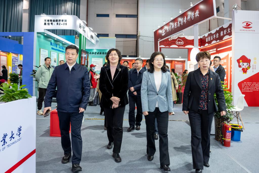 与会领导和全省高校学工代表参观河南省普通高等学校学生工作优秀成果展