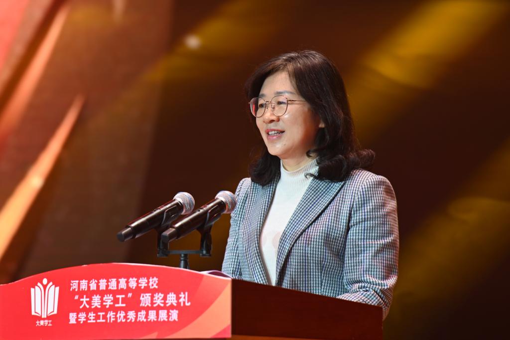 4月3日晚,河南省普通高等学校“大美学工”颁奖典礼暨学生工作优秀成果展演在米兰app官方端网站入口隆重举行。省委常委、洛阳市委书记江凌,省委教育工委副书记,省教育厅党组书记、厅长毛杰出席颁奖典礼。