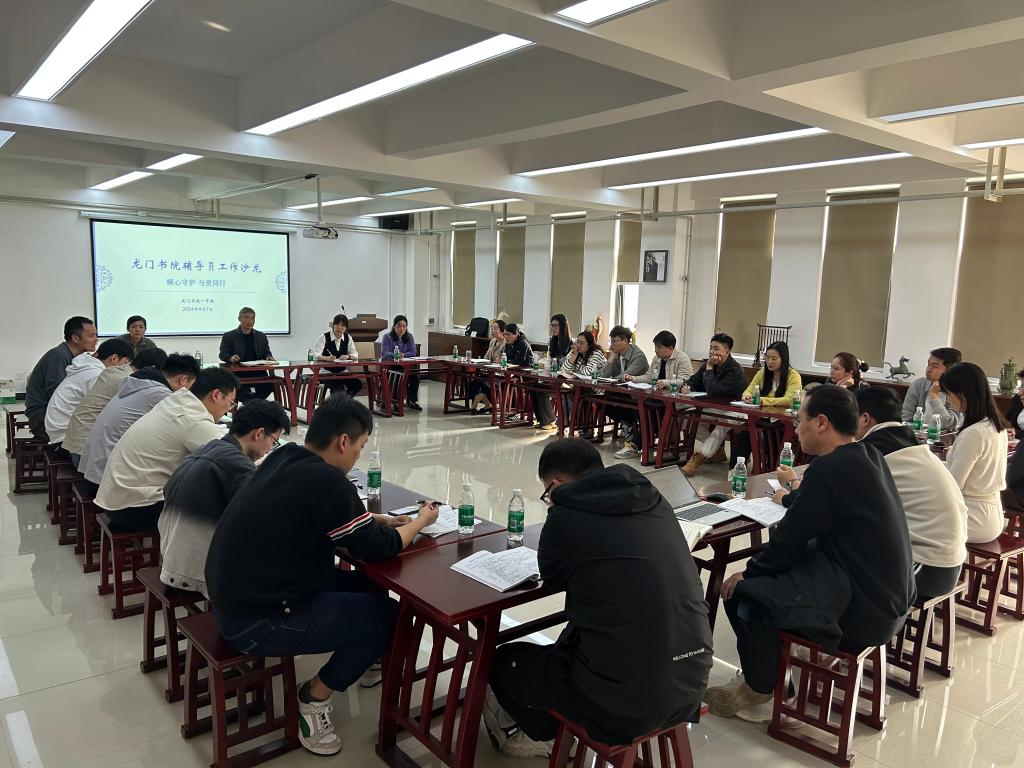 为进一步提高辅导员队伍的工作能力和业务水平,加强辅导员之间经验交流和成果共享。4月7日下午,龙门书院一号院在非遗艺术馆举办“倾心守护 与爱同行”辅导员工作沙龙。活动由龙门书院院务委员会主办,龙门书院全体辅导员参加。