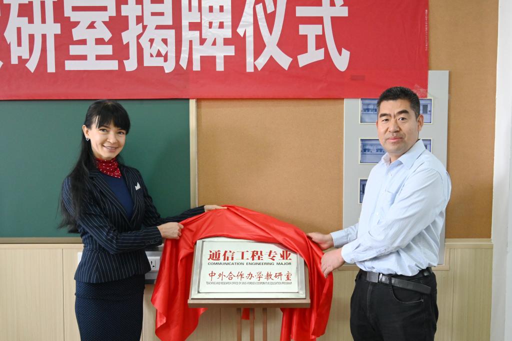 仪式上,物理与电子信息学院院长彭枫介绍了通信工程中外合作办学人才培养方案、课程建设、教育教学和课堂管理等情况。外方代表Madina女士转达了白俄罗斯国立信息与无线电大学校长对教研室成立的祝贺,希望进一步扩大合作专业领域,强化合作深度,努力把合作项目打造成示范基地。