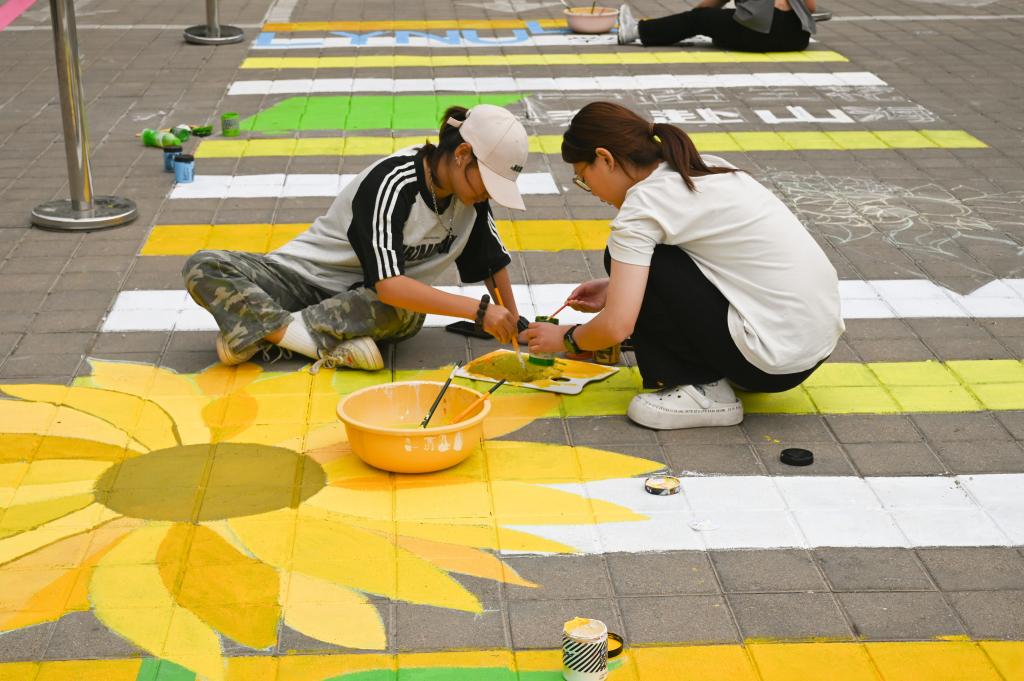 饮食服务中心工作人员带着10余名美术与艺术设计学院学生,花费24个小时,手绘了一条“花路”,为2024届毕业生献上了一份特别的礼物。一名前来打卡留影的毕业生这样说:“谁能拒绝这样的毕业仪式感呢?我会和我的母校在未来一起成长,再次感恩母校。”