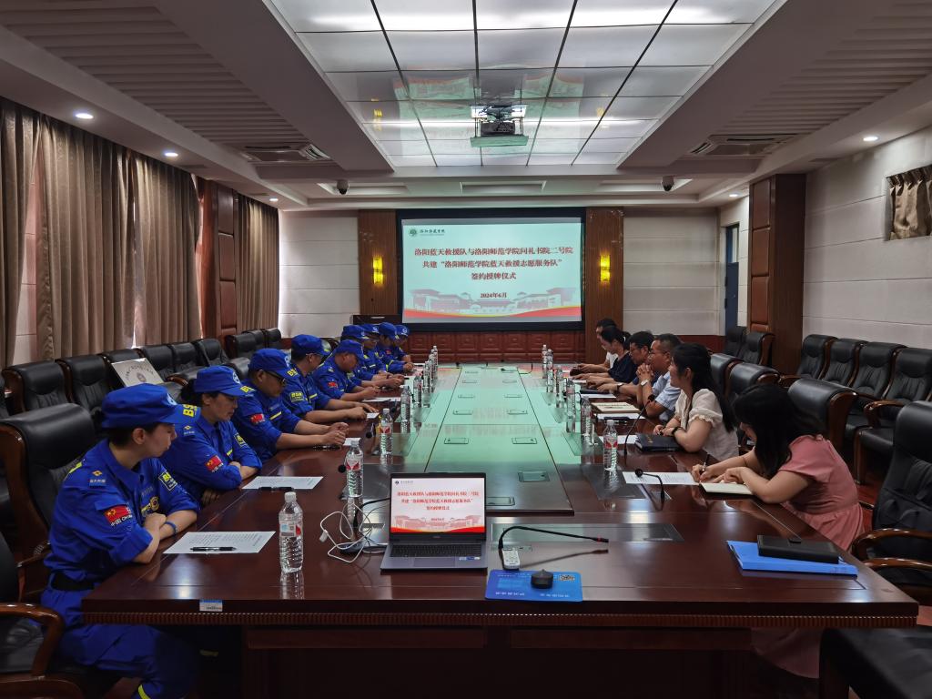 为进一步提高米兰app官方端网站入口师生应急救助能力,6月20日下午,问礼书院二号院与洛阳市蓝天救援队共建蓝天救援志愿服务队签约授牌仪式在A6-209举行。洛龙区蓝天救援队队长闫冬冬、副队长杨山,偃师区蓝天救援队队长曲方辉,问礼书院二号院党政领导及师生代表参加。