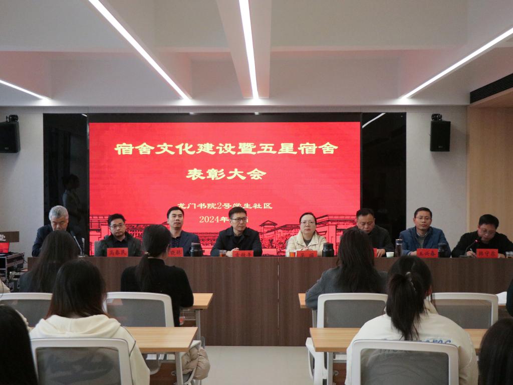 会上,龙门书院相关负责人宣读了《龙门书院二号院关于表彰第一期“五星宿舍”的决定》。与会领导分别为受表彰的宿舍成员颁发荣誉证书。十佳五星宿舍代表李欣怡、张贝贝分别从“红色之星、安全之星、文明之星、学习之星及和谐之星”五个角度作交流分享,全方位展示了宿舍成员在思想、学习和生活等方面的卓越表现。