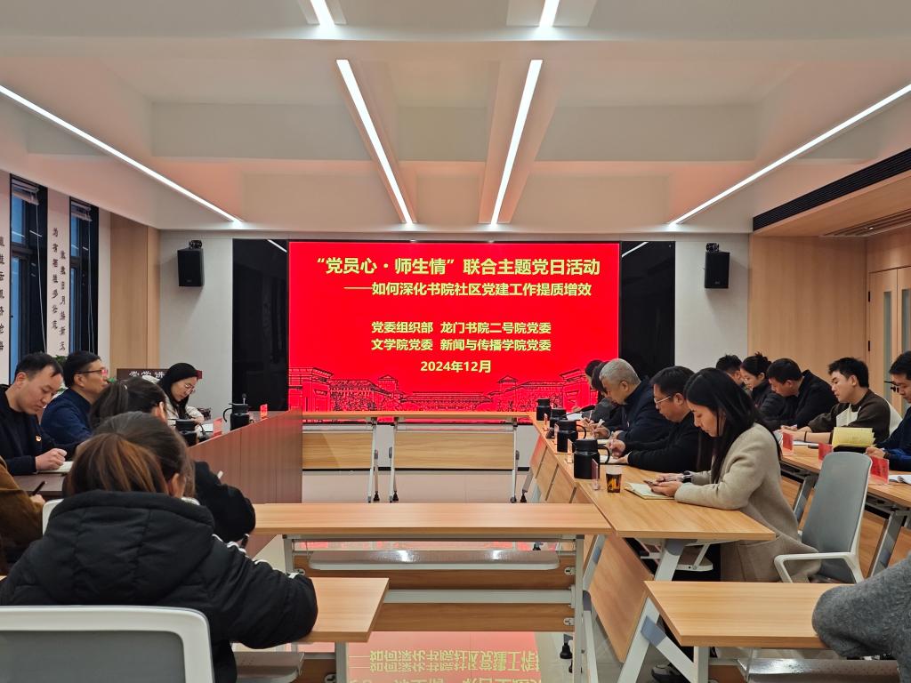 12月10日下午,党委组织部联合龙门书院二号院党委在崇学讲堂开展“党员心·师生情”主题党日活动。党委组织部相关负责人及龙门书院二号院班子成员、书院党支部书记及支委代表参加。