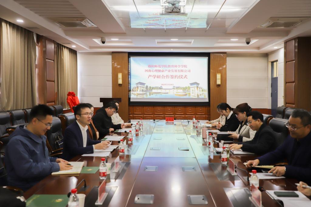 3月20日,教育科学学院与河南心理健康产业发展公司(大象心理)在A6-209会议室举行产学研基地签约暨揭牌仪式。大象心理CEO张宗威及团队成员,教育科学学院领导班子成员、心理专业教师参加活动。