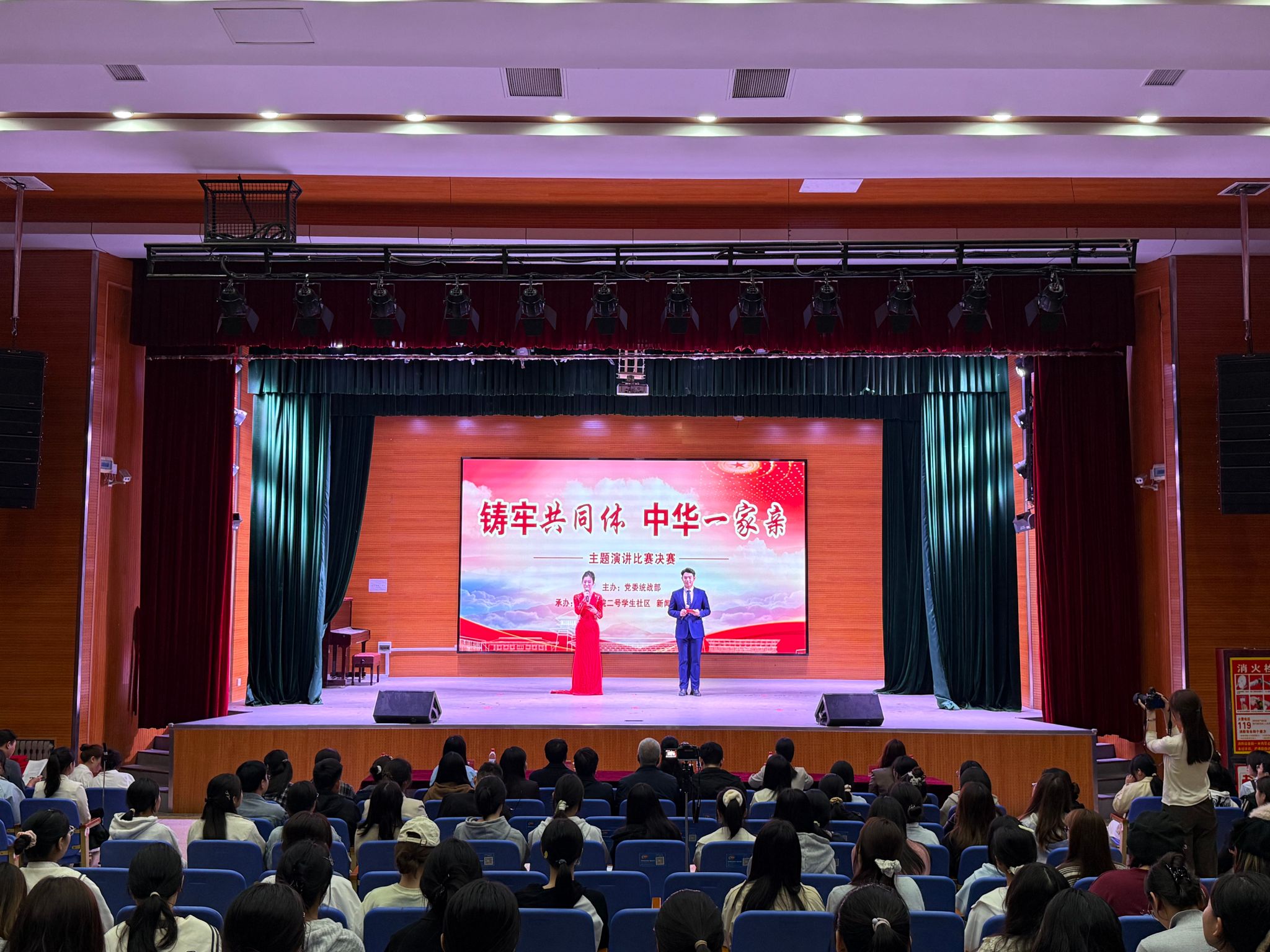 10月16日晚,“铸牢共同体 中华一家亲”主题演讲比赛决赛在学前教育学院蓓蕾剧场举行,活动由党委统战部主办、龙门书院二号学生社区承办、新闻与传播学院协办。党委宣传部、党委统战部、学生处、校团委、龙门书院二号学生社区、新闻与传播学院等单位负责人,各书院师生代表观看了比赛。